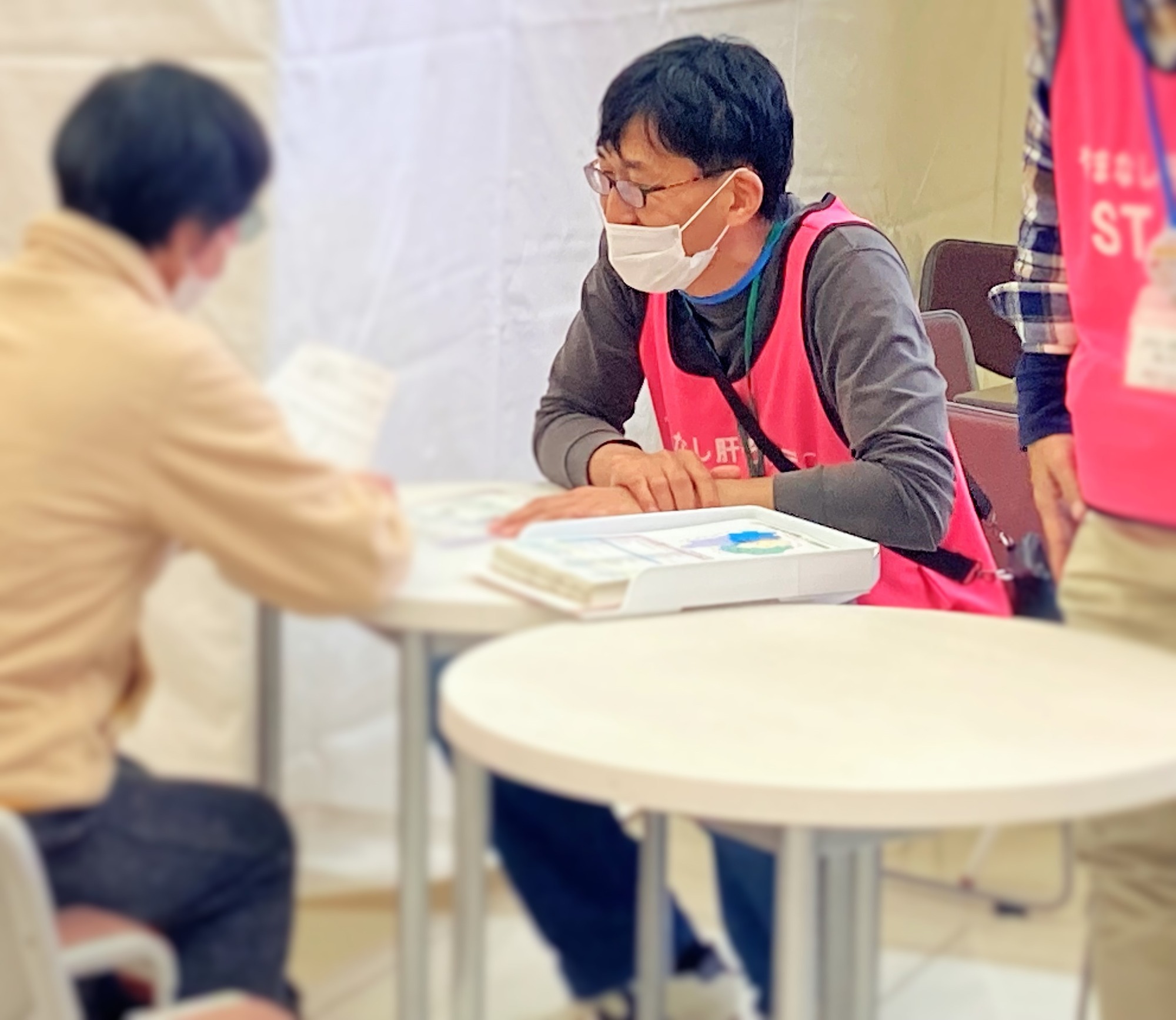 当院からも肝臓専門医と肝疾患コーディネーターの資格を持つ看護師などが参加してイベントを盛り上げました。血圧・握力・認知機能測定の他、一番人気のフィブロスキャンという検査はモールの開店と当時に、多くの方が整理券を求め大好評でした。